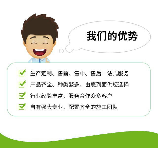 公司的产品畅销全国各地,为了更好的满足客户的需求,先后在河南郑州,四川成都设立分厂。 同时公司已经增养一支近100人的服务团队,他们技术过硬,专业知识始练,服务售后到位。我们的产品广泛运用农村别墅,旧城改造,地产楼盘,市政工程,学校医院,商业场所。